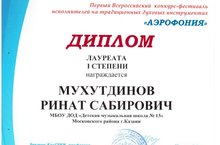 Поздравляем Мухутдинова Рината Сабировича, ставшего лауреатом I степени на Всероссийском фестиваль-конкурсе исполнителей на традиционных духовых инструментах "Аэрофония".