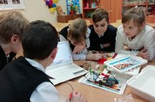 В гимназии, к общей нашей радости, в группе продлённого дня для учеников 4-х классов начал свою работу клуб "Робототехника". Это стало возможным, благодаря помощи выпускника школы Красильникова Валерия Владимировича.