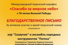 Международный творческий марафон " Спасибо за мирное небо" 09.05.2021