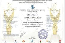 В Казани прошла Международная музыкальная премия "Sforzando", где нашу школу с честью представил Давлиев Самат (класс преподавателя Евграфовой А.Ф.), став обладателем диплома лауреата II премии. Поздравляем Самата с высокой оценкой жюри. Администрация школы выражает благодарность преподавателю Евграфовой А.Ф. за подготовку конкурсанта.
