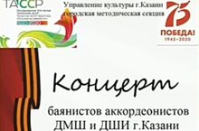 В этом году "Концерт баянистов аккордеонистов ДМШ и ДШИ г.Казани", посвященный 100 - летию ТАССР и 75 - летию Победы состоялся 18 декабря в онлайн - формате на платформе Youtube. Концерт подготовили: заведующий городской секцией преподавателей ДМШ г.Казани по классу баяна - аккордеона, заслуженный работник культуры РТ Шестаков Николай Степанович (ДМЩ №17 имени С.З.Сайдашева), программу составила заслуженный работник культуры РТ Бородина Любовь Семеновна (ДМШ №5), работала над сценарием и вела концерт Нуриева Аделя Камилевна (ДМШ №5), видеомонтаж осуществлял Антонов Евгений Витальевич (ДМШ №9). Нашу школу в концерте представил ансамбль баянистов (Тактаров Эрнест, Давлиев Самат, Батыршин Динар, Амерханов Салахеддин, Самигуллин Ильнур, Гарифуллин Адель) под руководством преподавателя Евграфовой Айгуль Фаритовны. Поздравляем ребят с участием в концерте. Администрация школы выражает благодарность преподавателю Евграфовой А.Ф. за подготовку концертного номера. Концерт можно посмотреть на платформе Youtube.
