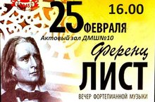 Сегодня в актовом зале ДМШ состоялся вечер фортепианной музыки, посвященный Ференцу Листу. В программе вечера прозвучали Этюд № 9, 12 из цикла "Юношеские годы", Погребальное шествие, Гимн любви из цикла "Поэтические религиозные гармонии", "Кампанелла" из цикла "Большие этюды по Паганини", "Тарантелла" из цикла "Годы странствий", "Утешения", Транскрипция "Смерть Изольды" из оперы Р. Вагнера "Тристан и Изольда", Мефисто - вальс в исполнении учащихся и студентов класса доцента Т. В. Халтуриной.
