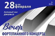Сегодня в актовом зале ДМШ № 10 состоялся Вечер фортепианного концерта, в котором приняли участие учащиеся класса преподавателей Закировой Ирины Викторовны и Кузнецовой Анны Игоревны. В программе вечера прозвучали "Концерт для фортепиано и струнного оркестра № 2" И. Берковича, "Концерт для фортепиано с оркестром" (Юношеский) Л. Батыркаевой, "Концертино" для фортепиано и струнного оркестра ля минор Ю. Полунина. Концерт прошел на одном дыхании. Яркое, эмоциональное и профессиональное выступление участников произвело большое впечатление на слушателей.