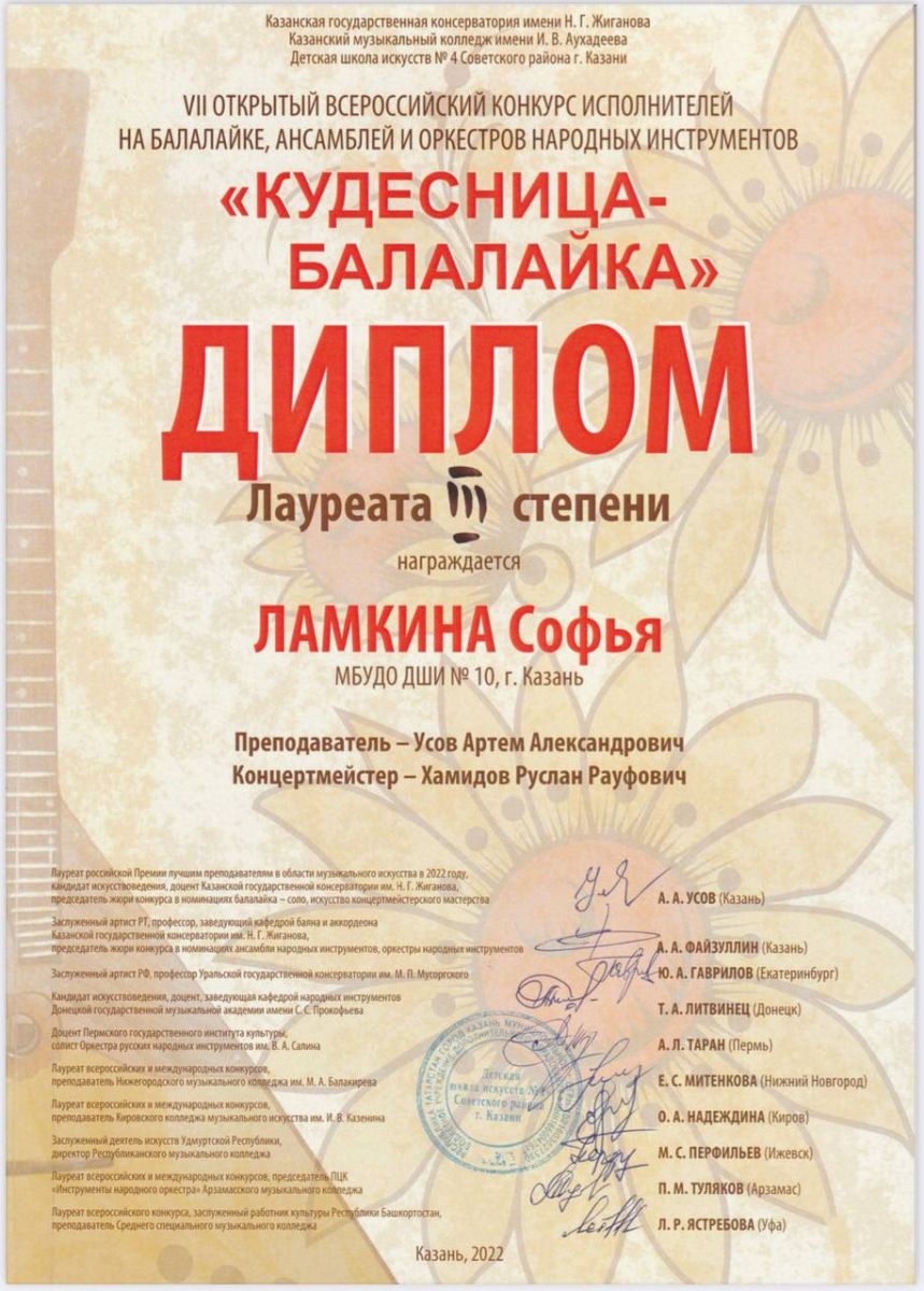 - Ламкина Софья - Лауреат 3ст
