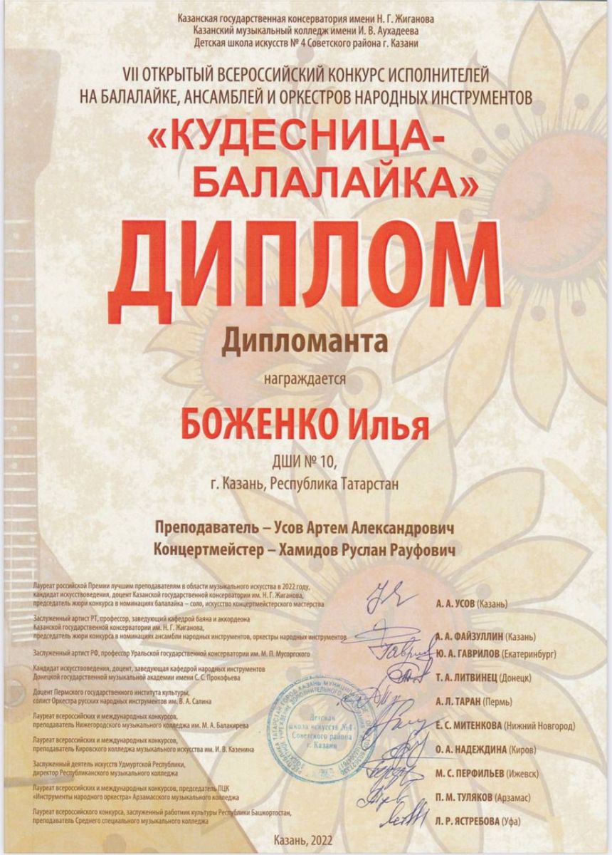 - Боженко Илья - Дипломант