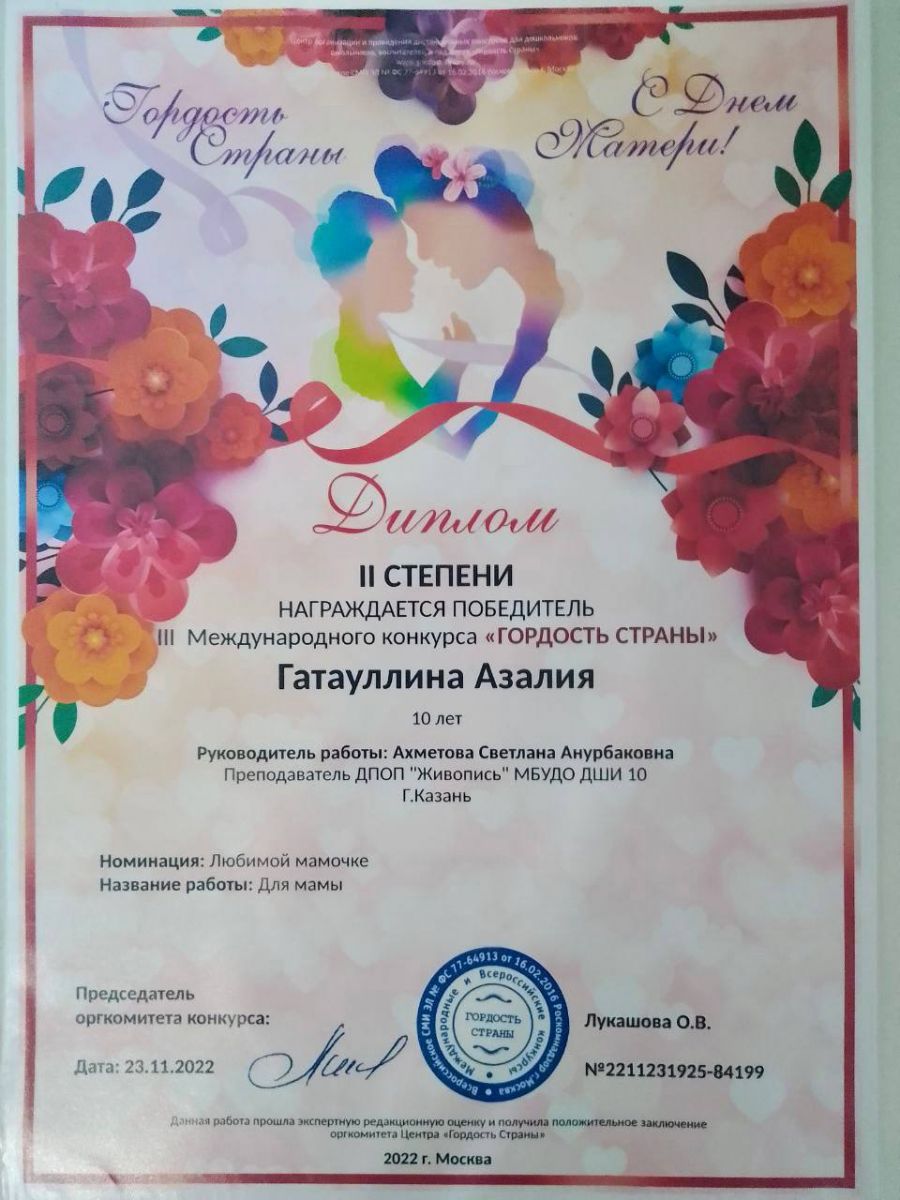 -Гатауллина Азалия/Лауреат 2ст в номинации «Любимой Мамочке»