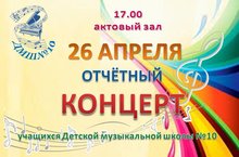26 апреля в 17.00 в актовом зале состоялся Отчетный концерт учащихся ДМШ № 10. В концертной программе были представлены солисты, творческие коллективы: младший хор "Конфетти", старший хор "Созвучие", ансамбль народных инструментов "Потешки", "Монлы саз", ансамбль балалаечников "Забава", ансамбль баянистов, дуэт "Шурики", ансамбли струнно-смычковых инструментов младших и средних классов, вокальный ансамбль"Домисолька". Программа нашего концерта была насыщена и разнообразна. В очередной раз юные музыканты доказали всем, что обучение в музыкальной школе - это увлекательное занятие. Исполненная на концерте классическая, народная, эстрадная музыка показала весь спектр направлений музыкального отделения школы. Выступление учащихся сопровождались прекрасным видеорядом. Концерт прошел в теплой, дружеской атмосфере. Слова благодарности прозвучали со стороны родителей и гостей праздника в адрес всего педагогического коллектива школы.