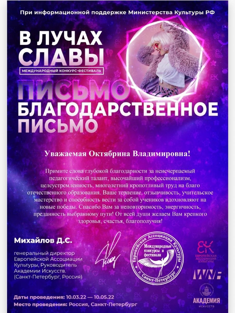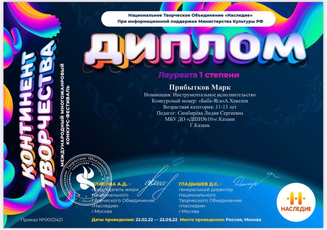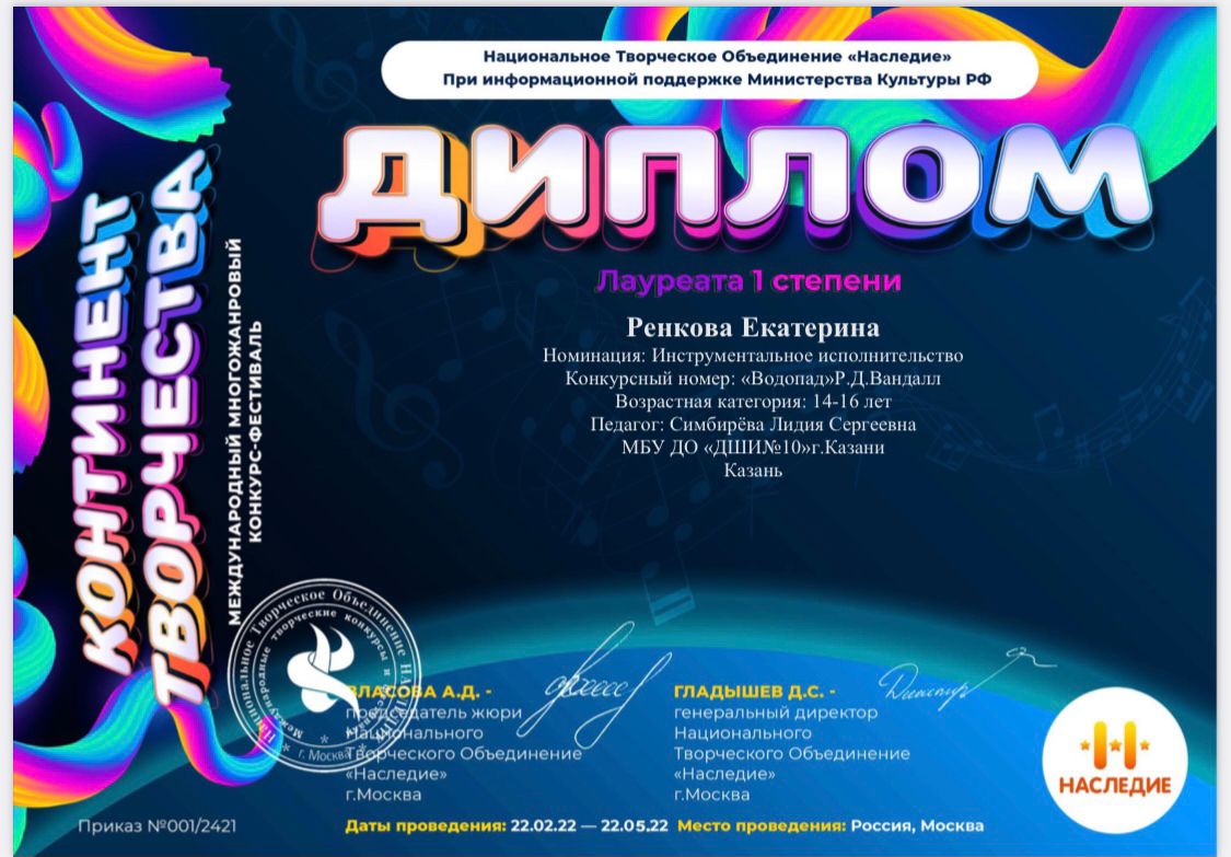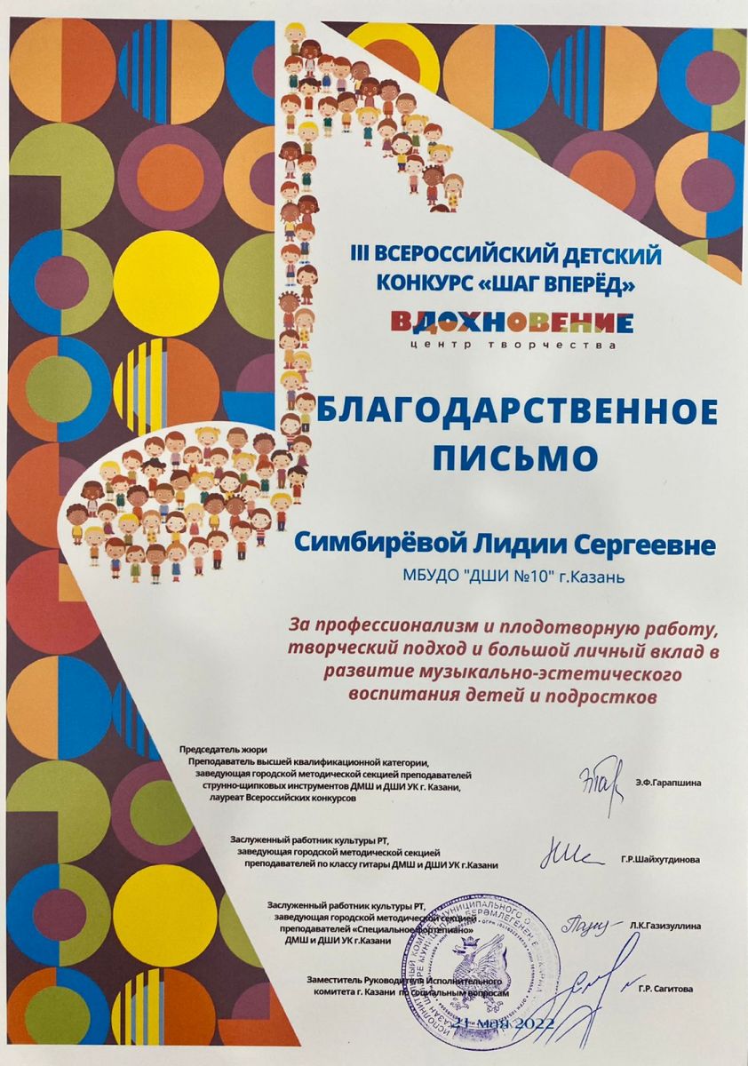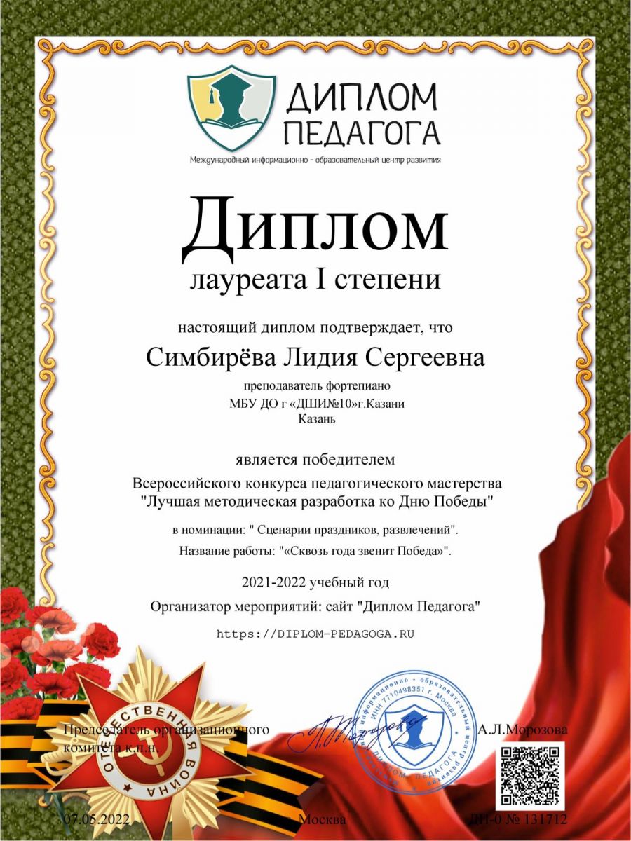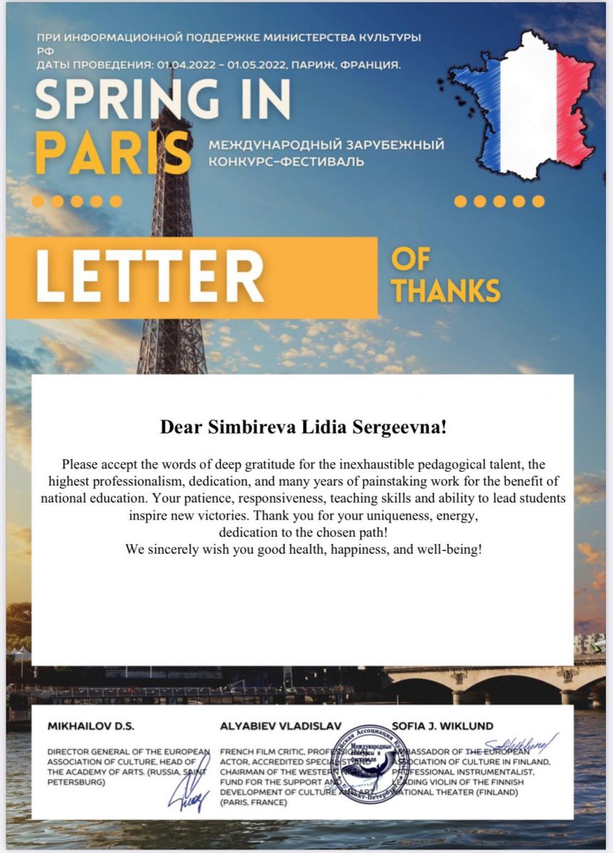 Достижения учащихся и преподавателя класса Симбирёвой Лидии Сергеевны 14.05.2022