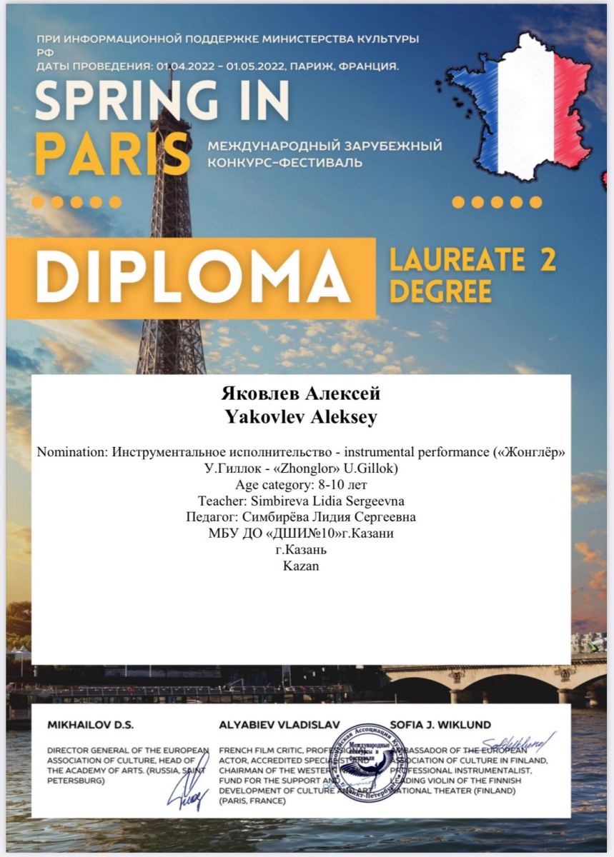 МЕЖДУНАРОДНЫЙ ЗАРУБЕЖНЫЙ КОНКУРС-ФЕСТИВАЛЬ SPRING IN PARIS