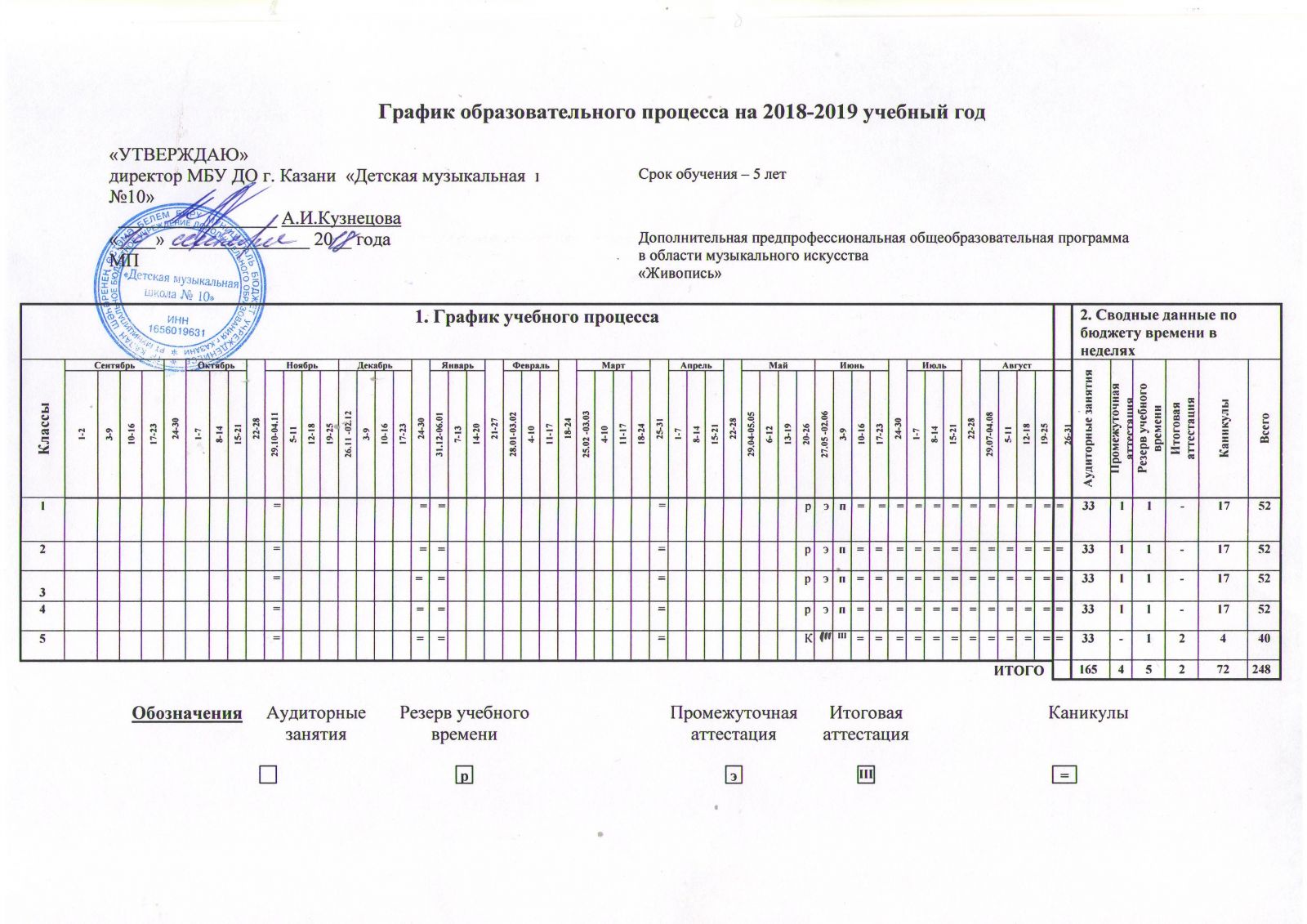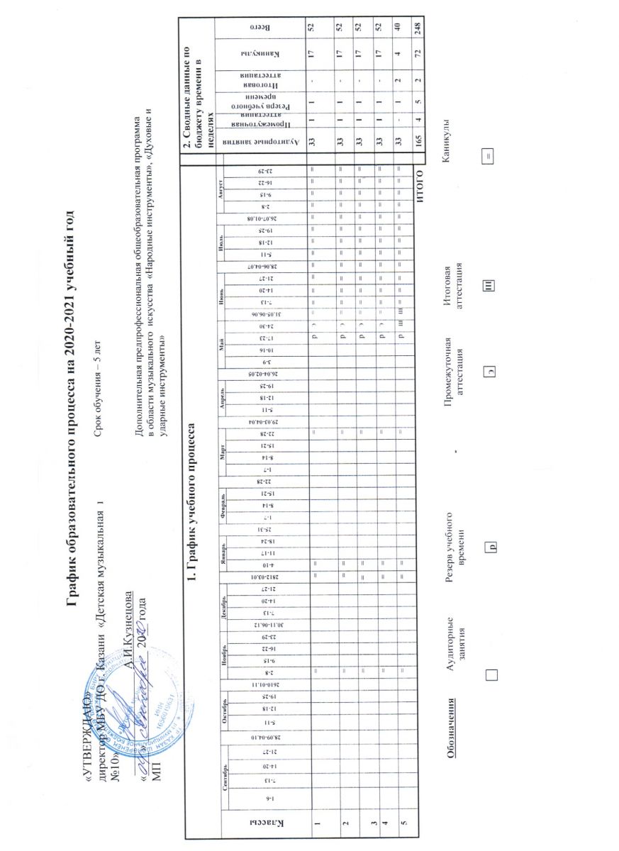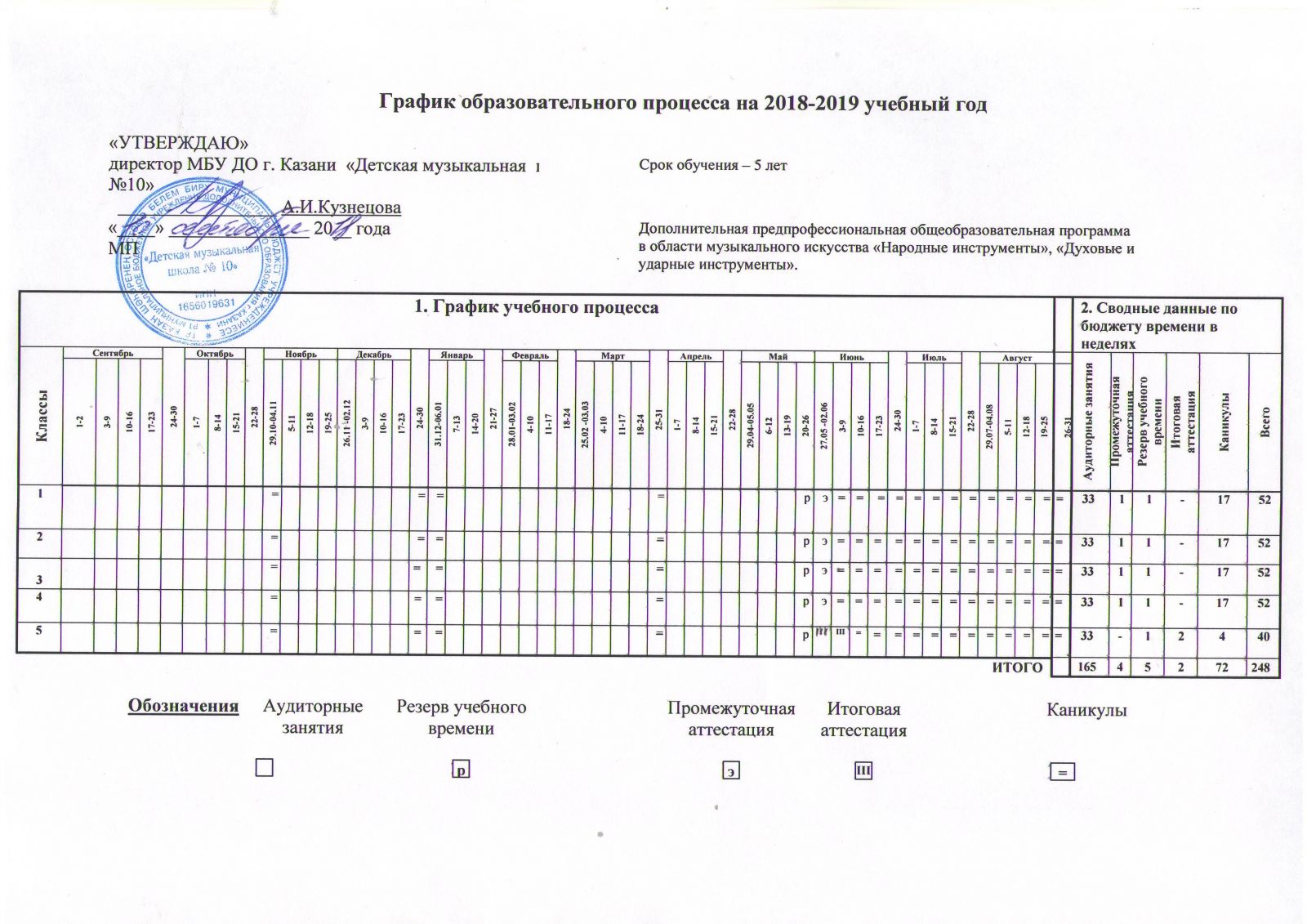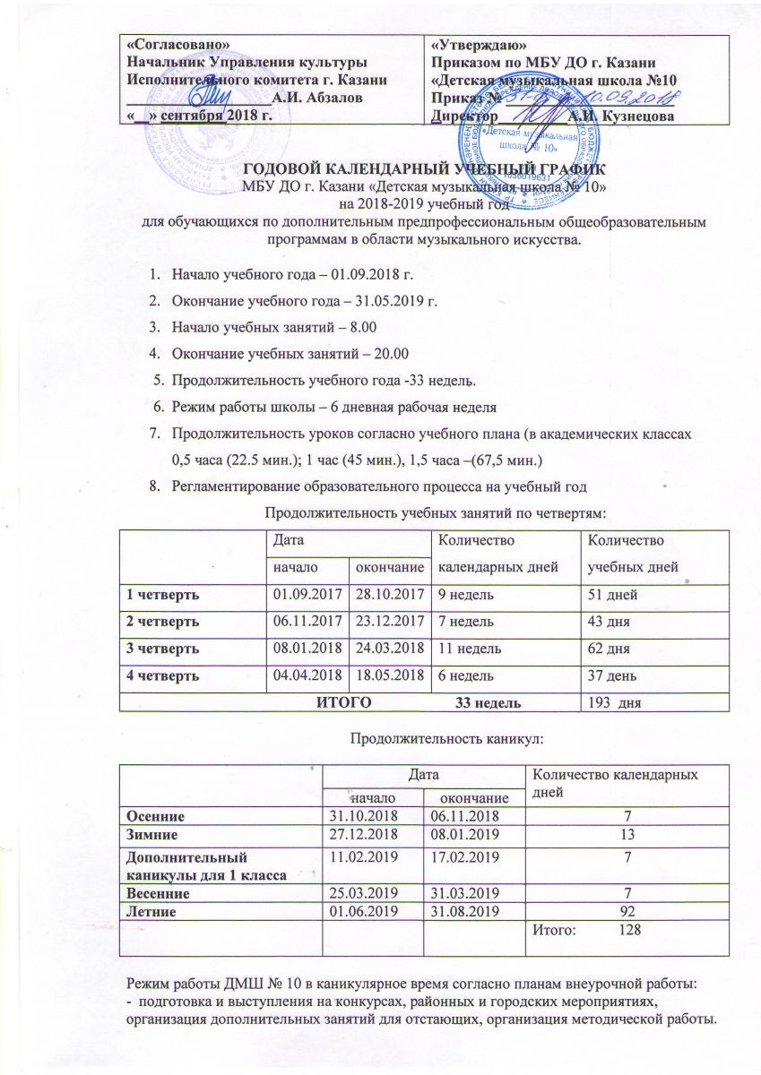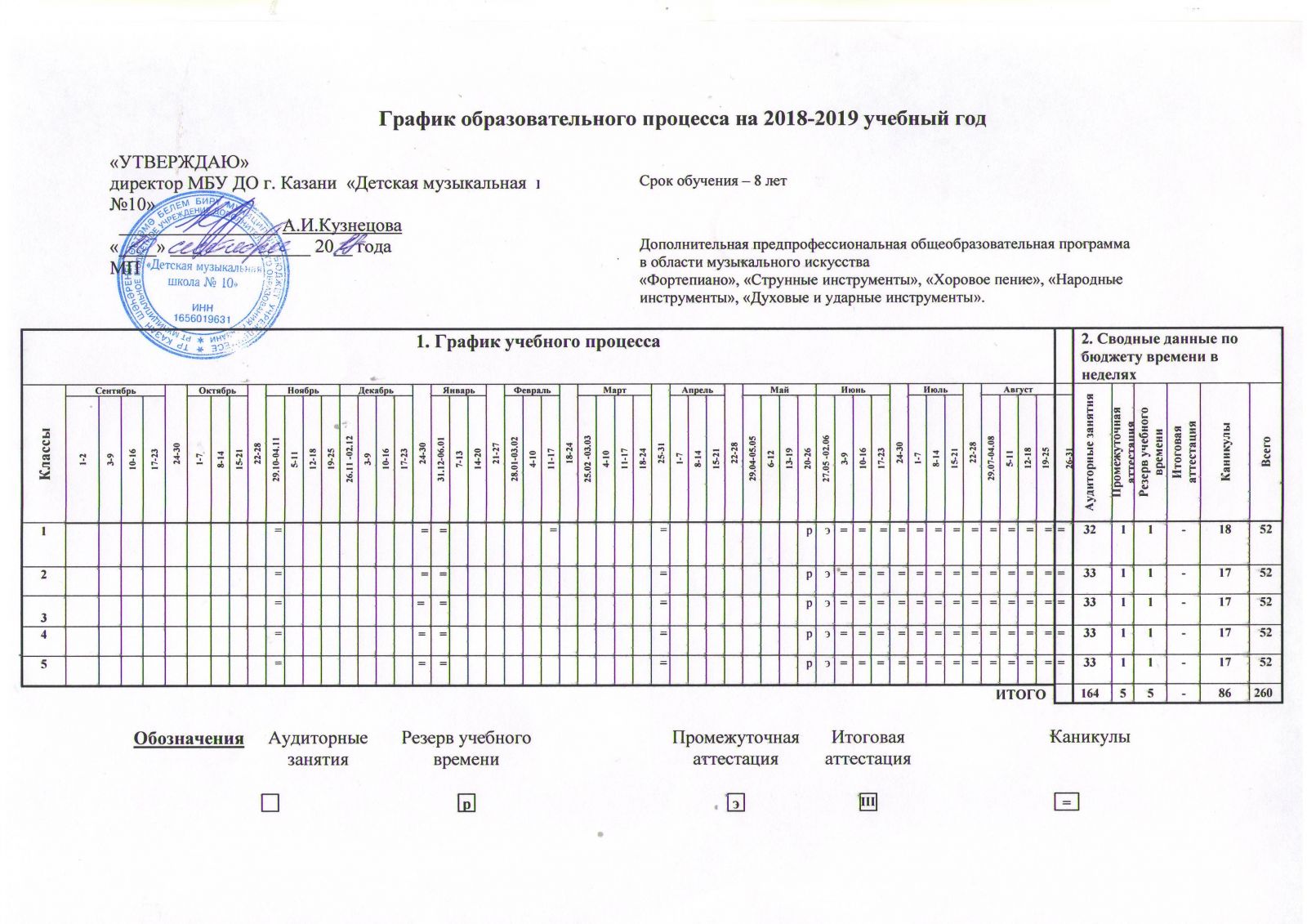 Годовой календарный учебный график 2018 - 2019 уч. г. ДПОП в области музыкального искусства