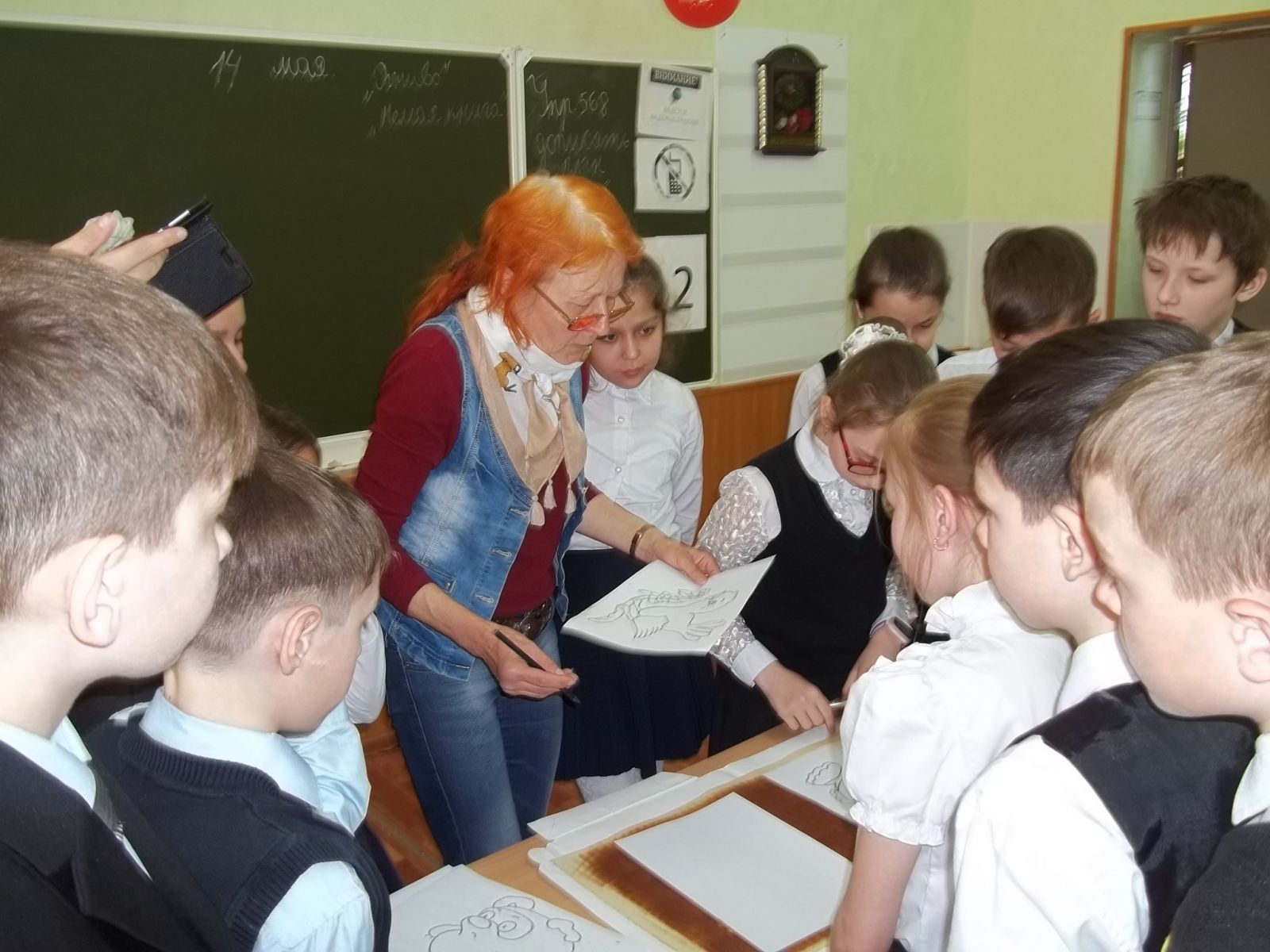 14 мая преподаватель нашей школы Т.А. Зубрилина провела мастер-класс по монотипии для учащихся 4-х классов в Гимназии № 50. Ребята познакомились с новой, для них техникой изобразительного искусства и получили массу удовольствия от выполненной работы.