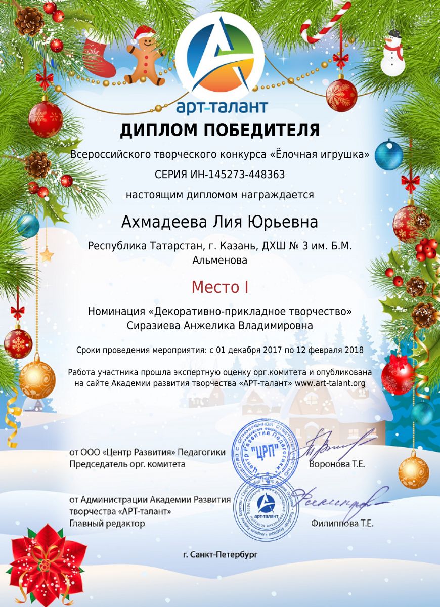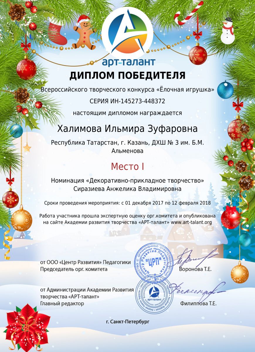 Всероссийский творческий конкурс "Ёлочная игрушка" 12.02.2018