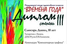 В декабре 2015 года в г. Белорецк был проведен ежегодный конкурс художественных открыток «Времена года – 2015». Организатором выступила Международная Ассоциация Профессиональных Художников Арт-Галерея 7D. В конкурсе приняли участие ученики 2 «Г» и 2 «Д» класса, преп. Сиразиева А.В. Участники конкурса оценивались в разных возрастных категориях и номинациях.