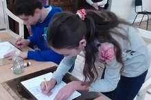 Учащиеся работали с натуры, они делали зарисовки и наброски с чучел животных и птиц.