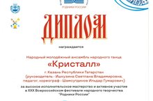 Хореографический ансамбль «Кристалл» ГБУ ДО «Детский Центр «Счастливое детство» представил самобытность и многообразие традиционной культуры народов Татарстана на XXX Всероссийском фестивале народного творчества «Родники России»