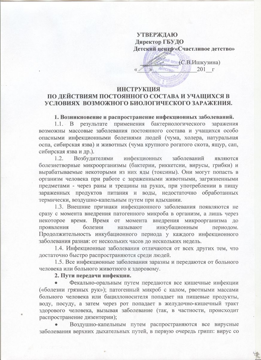 Инструкция по действиям постоянного состава и учащихся в условиях возможного биологического заражения