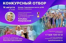 16 августа 2020 года в городе Казани на базе плавательного бассейна "Олимпиец" Казанского училища олимпийского резерва состоится конкурсный отбор в "Школу Т.Н. Покровской". Отбор спортсменов проводит Заслуженный тренер России, старший тренер по резерву национальной сборной России - Мендыгалиева Наталья Анатольевна. Подрорбности отбора можно узнать на сайте Федерации плавания РФ. С нетерпением, ждем Ваших заявок!