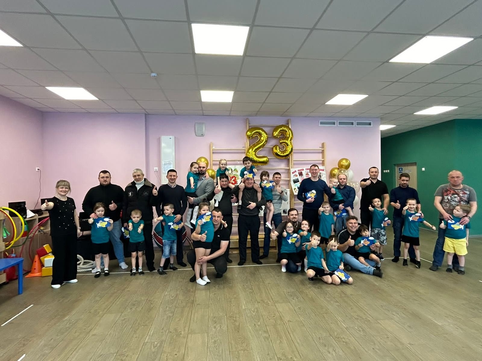 Праздник прошел в форме спортивного досуга с элементами игровой деятельности. Воспитанники старших групп рассказывали стихи, отгадывали загадки, вместе с папами соревновались и играли в подвижные игры.