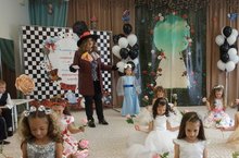 В нашем саду прошли выпускные. Дети побывали в необычной сказке "В стране чудес". К ним в гости приходил Чеширский кот, Кролик, Шляпник и Красная королева.