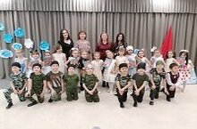 Бүген бәйрәм алды көнендә балаларыбыз үзләренең яраткан әтиләрен Ватанны Саклаучылар көне белән котладылар. Бик күңелле булды! Әтиләр, балалары белән бергәләп, балачакларын искә төшереп, рәхәтләнеп күңел ачтылар. -