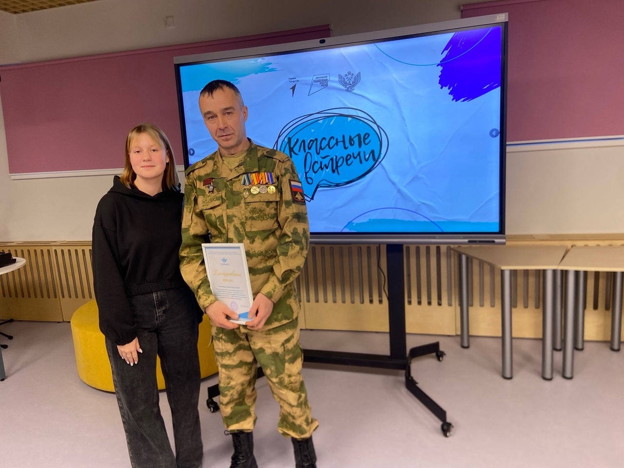 Опубликовано: 25.10.2023В рамках Всероссийского проекта Классные встречи в нашем центре состоялась встреча с бойцом добровольческого батальона АЛГА - Садреевым Наилем Абдулловичем.