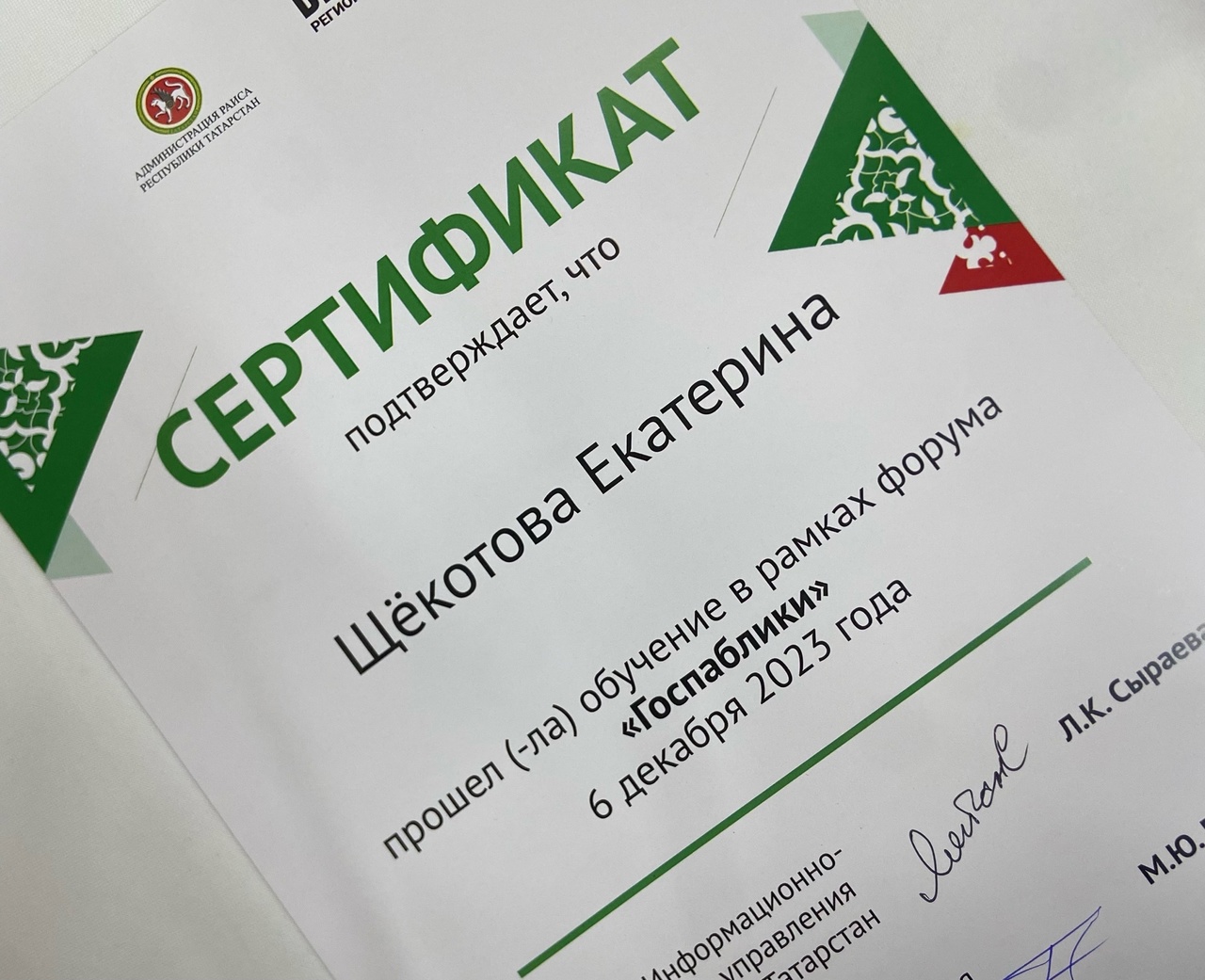 Опубликовано: 07.12.20236 декабря в КЦ «Московский» педагог нашего центра - Щёкотова Екатерина Евгеньевна прошла обучение в рамках форума «Госпаблики», организованным администрацией Раиса Республики Татарстан и АНО «Диалог регион».