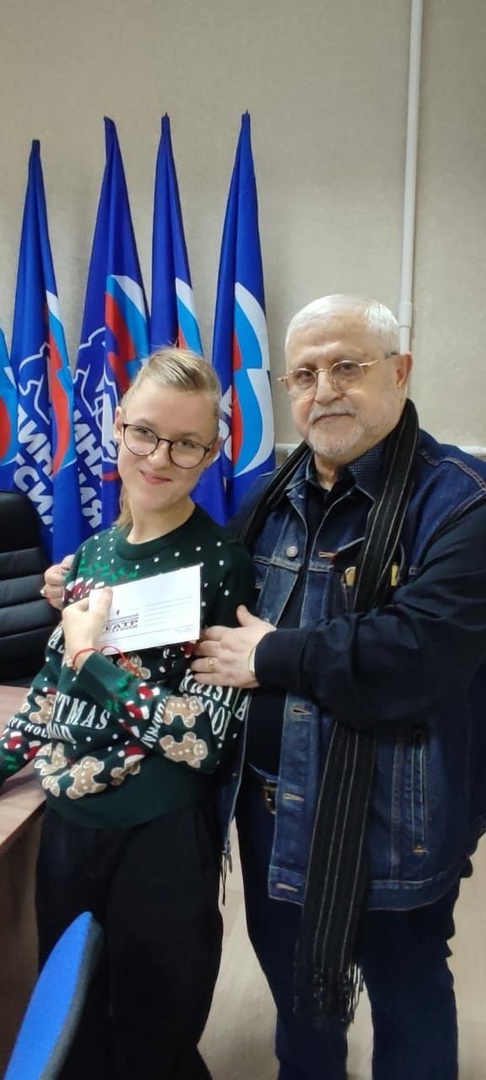 Церемония награждения проходила в Общественной приемной Партии «Единая Россия» Кировского района, где кроме дипломов от ЦДОД «Заречье» призеры конкурса получили памятные наборы для творчества и пригласительные билеты в театр от депутата Государственного Совета Республики Татарстан, художественного руководителя КАРБД театра им. В.И.Качалова Александра Славутского.