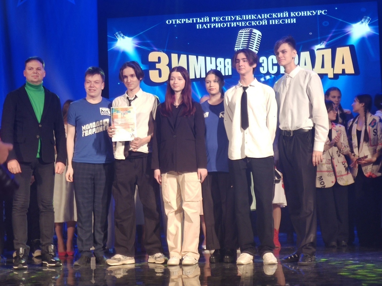 Опубликовано: 17.02.202417 февраля в Центре культуры, искусства и народного творчества им.Горького в г.Зеленодольск состоялся XI Открытый Республиканский конкурс патриотической песни "Зимняя эстрада 2024". Успешно пройдя прослушивание, наше объединение Рок-студия на гала-концерте представляли коллективы "Музыкальная пауза" и "Гармония" (педагог Евдокимов Василий Викторович). Для большинства ребят это был дебют на большой сцене! Они достойно исполнили подготовленные композиции и дали интервью телеканалу "ТВ-ЗЕД".