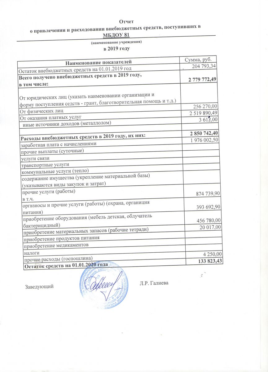 Отчет о привлечении и расходовании внебюджетных средств, поступивших в 2019 г