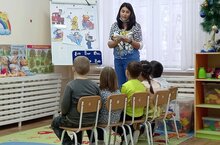 Воспитатель подготовительной группы № 1 Махмутова Алина Александровна поделилась опытом работы с коллегами по теме "Город профессий". Воспитанники показали неплохие знания в области различных профессий: врач, программист, инженер, военный и др. Педагогом были подобраны интересные формы и виды работ с детьми по закреплению темы. Занятие прошло интересно и с пользой, достигло поставленных целей.