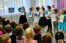 Дети в игровой форме закрепили знания о правилах дорожного движения, дорожных знаках. Ребятам было очень весело: они исполняли песни, играли в музыкальные игры по теме мероприятия. В играх дети побывали и пешеходами, и пассажирами, и шофёрами.