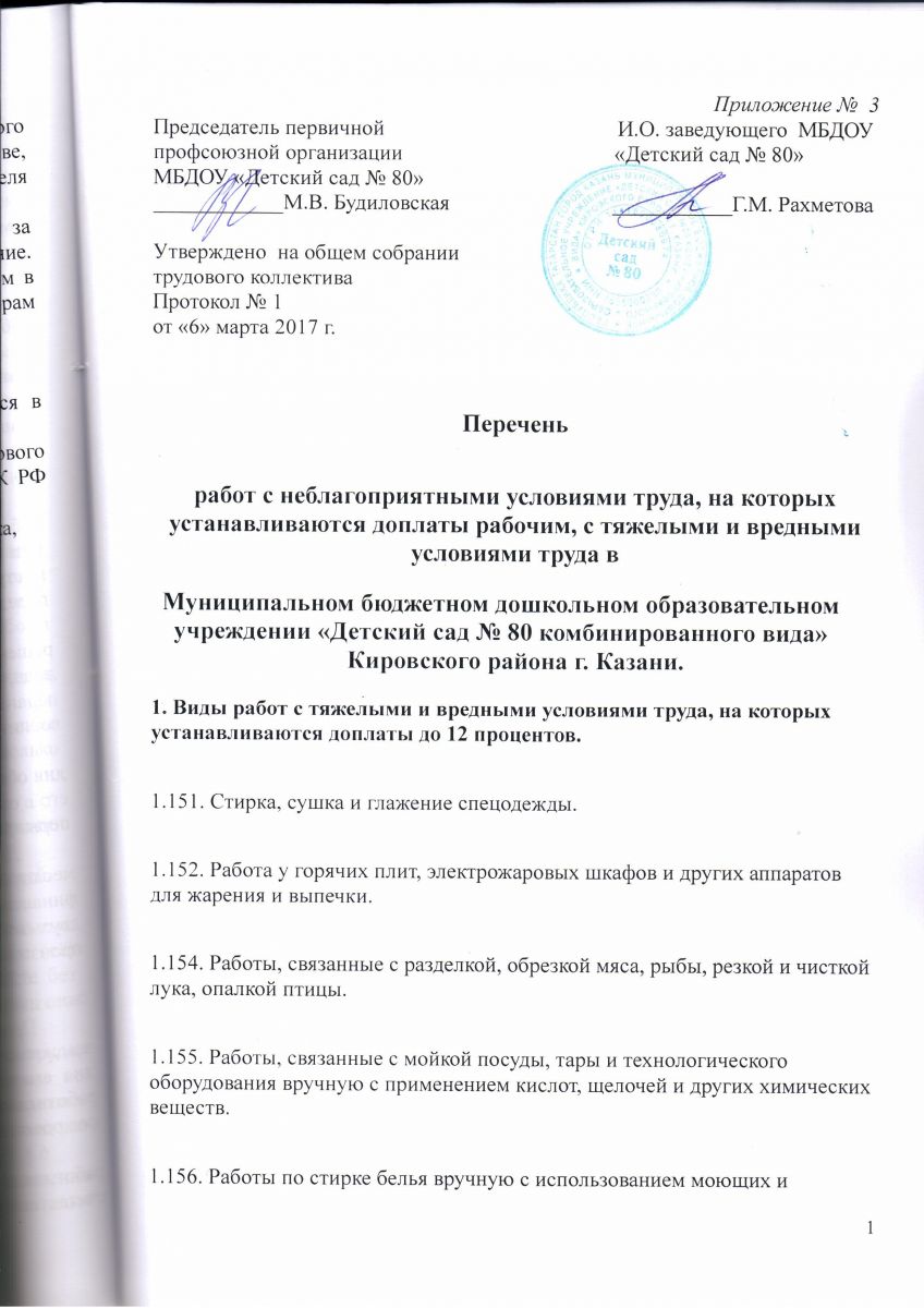 Перечень работ с неблагоприятными условиями труда, на которых устанавливаются доплаты рабочим, с тяжёлыми и вредными условиями труда