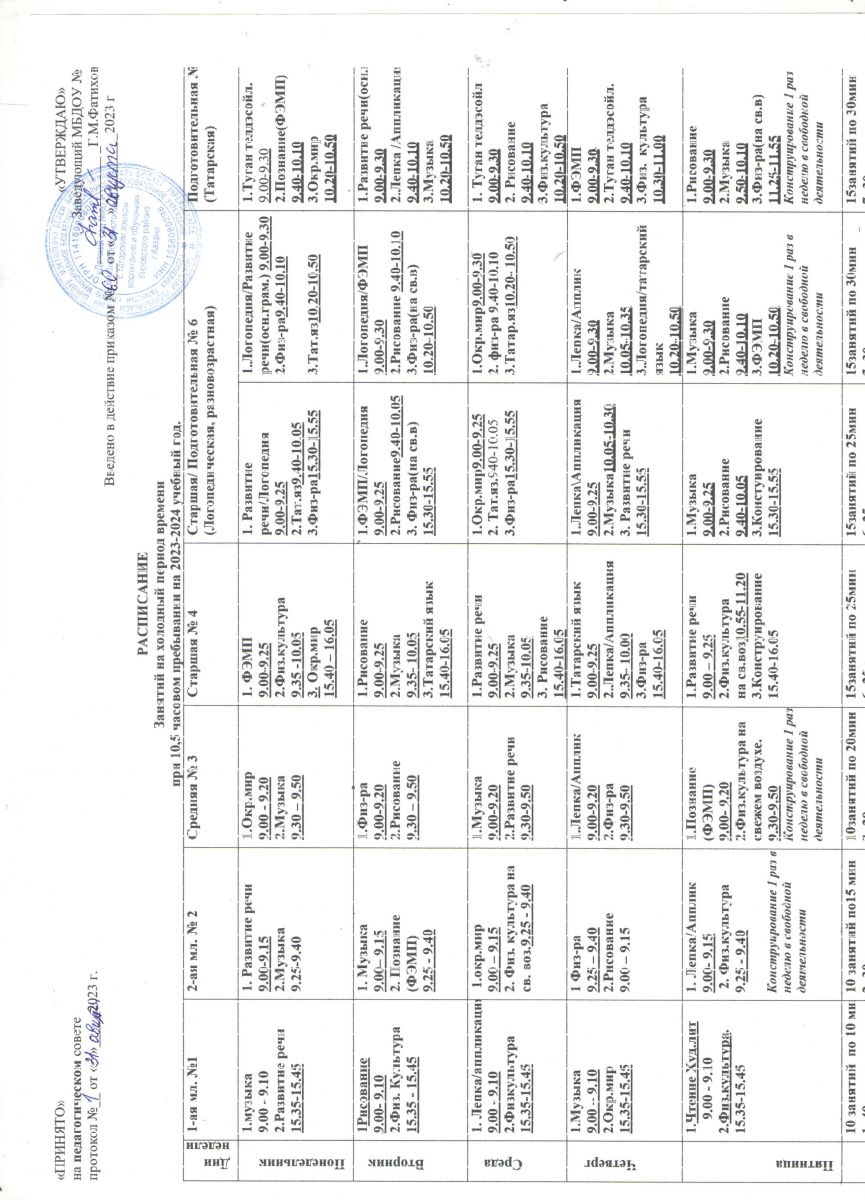 Сетка занятий на 2017- 2018 учебный год