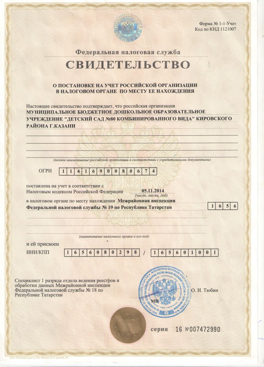 Свидетельство ИНН/КПП