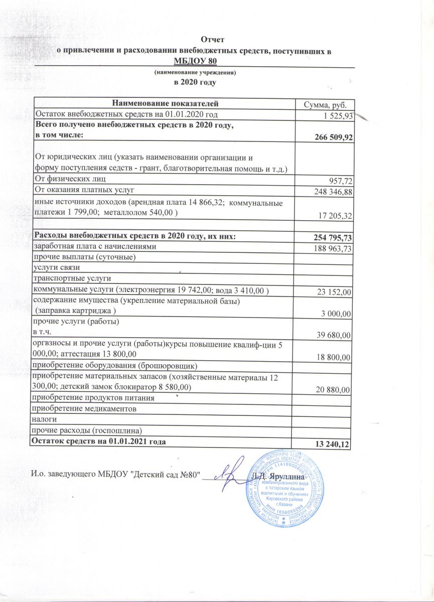 Отчет о привлечении и расходовании внебюджетных средств за 2020 год