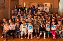 С воспитанниками ДОУ проведена профилактическая беседа о безопасном поведении на дорогах,о ношении СВЭ в темное время суток.