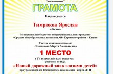 Ученик 1 класса Тимрюков Ярослав стал победителем во Всероссийском интернет - олимпиаде "Солнечный свет" по литературе для 1 класса, во Всероссийском конкурсе декоративно - прикладного творчества "Поделки из природных материалов"
