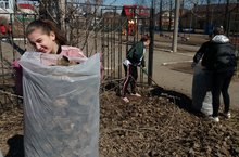 Сегодня учащиеся школы вместе с учителями провели субботник и очистили территорию школы от мусора.