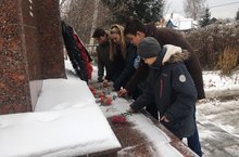 Сегодня ребята из ДОО "Союз 17" и отряда юнармейцев возложили цветы к памятнику павшим в Великой Отечественной войне.