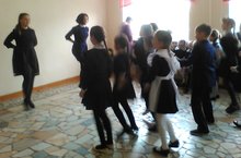 Учащиеся старших классов на переменах проводят танцевальные флеш-моб для младших школьников.