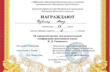 26 ноября прошла научно-исследовательская конференция им. К.Д. Ушинского, в которой приняла участие ученица 11 класса Кубинец Анна, научный руководитель Бариева Э.А. За работу "Казанских улиц имена" получила Грамоту.