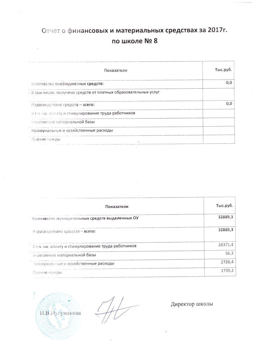Информация о поступлении и расходовании финансовых средств за 2017год