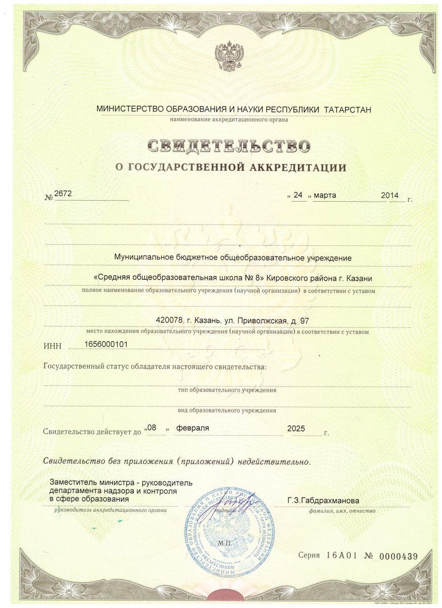 Муниципальное бюджетное общеобразовательное учреждение «Средняя общеобразовательная школа №8» Кировского района г. Казани