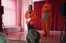В актовом зале ученики начальной школы встретились с героями сказки, которые рассказали им о правилах дорожного движения. Яркие костюмы и активная работа с залом очень понравились нашим малышам.