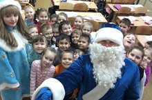 Всех учеников школы с наступающим Новым годом поздравили сегодня главные герои праздника Дед Мороз и Снегурочка. Вся школа в предновогоднем настроении пела песни и танцевала веселые танцы и конечно все получили маленькие сладкие подарочки.