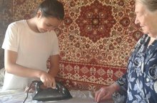 Анна Тимофеевна встречала помощниц с улыбкой. Девочки 7а класс помогли 88 летней труженнице тыла по дому и в огороде.