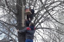 Каждой птичьей семье - по дому! С таким девизом развесили скворечники в парке Н.Г. Столярова наши старшеклассники совместно с депутатом Черепановым С.Н.