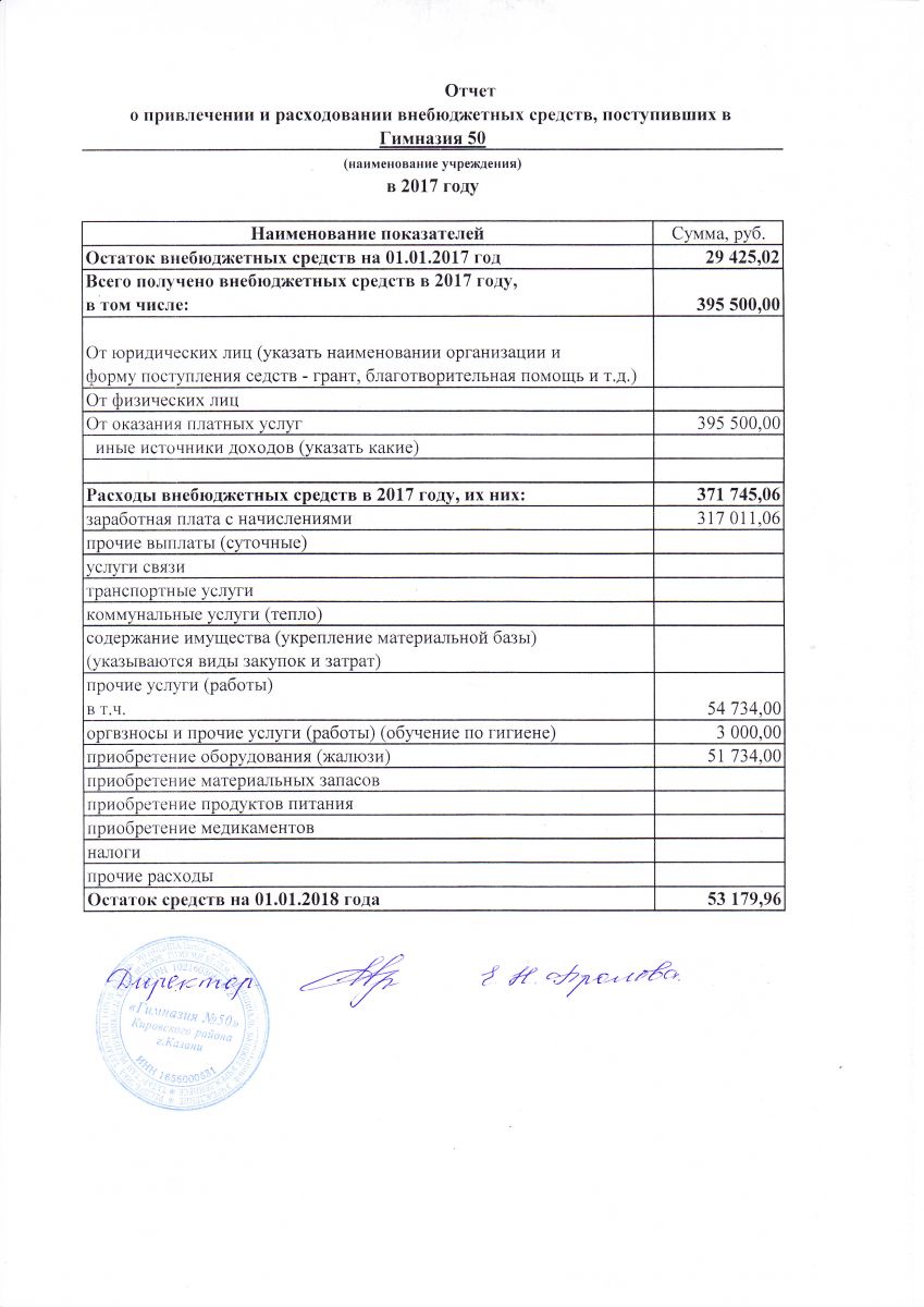 Отчет о финансовых и материальных средствах за 2017 год
