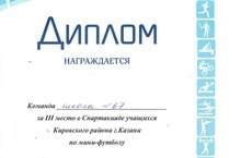 ПОЗДРАВЛЯЕМ!!!!! 30.10.2014 Поздравляем команду школы, занявшую 3 место в Спартакиаде учащихся Кировского района г.Казани по мини-футболу!!!!!