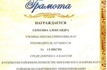 ПОЗДРАВЛЯЕМ!!!!! 30.10.2014 Поздравляем Серегину Александру, занявшую 2 место среди девочек 6-8 класссов в открытом районном первенстве Московского и Кировского районов по спортивному ориентированию. Так держать!!!!!